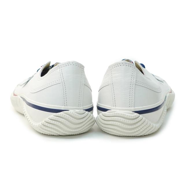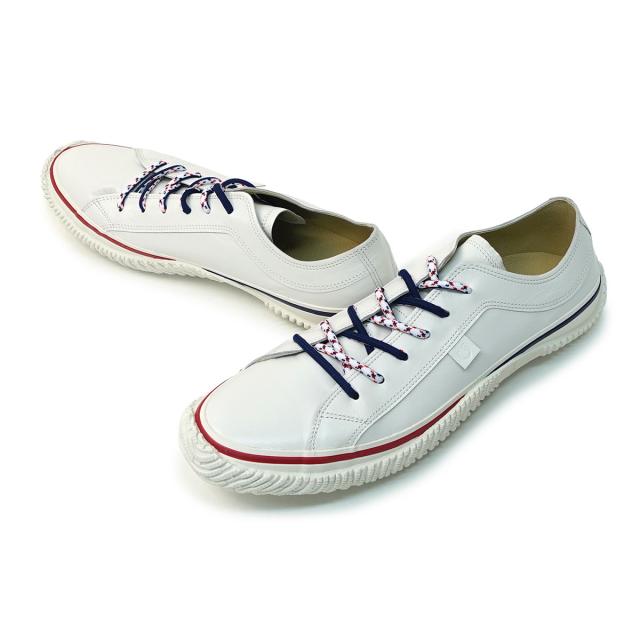 ホワイトのカンガルーレザーに、リバーシブルのシューレースとバイカラーのフォクシングテープが映えるローカット。