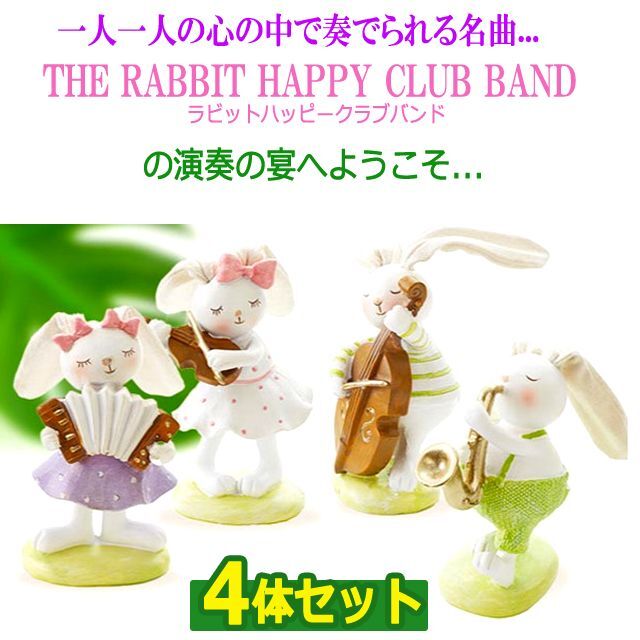4体セット インテリア バンド 楽器 メルヘン (THE RABBIT HAPPY CLUB BAND-ラビットハッピークラブバンド-4体セット)