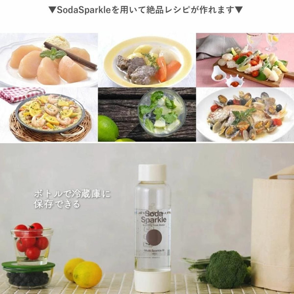 その中でもマルチスパークルはジュースもワインも炭酸にできるスグレモノ!お水ならたっぷり1リットル、ジュースやワインなどの場合は650mlの炭酸飲料が作れます。