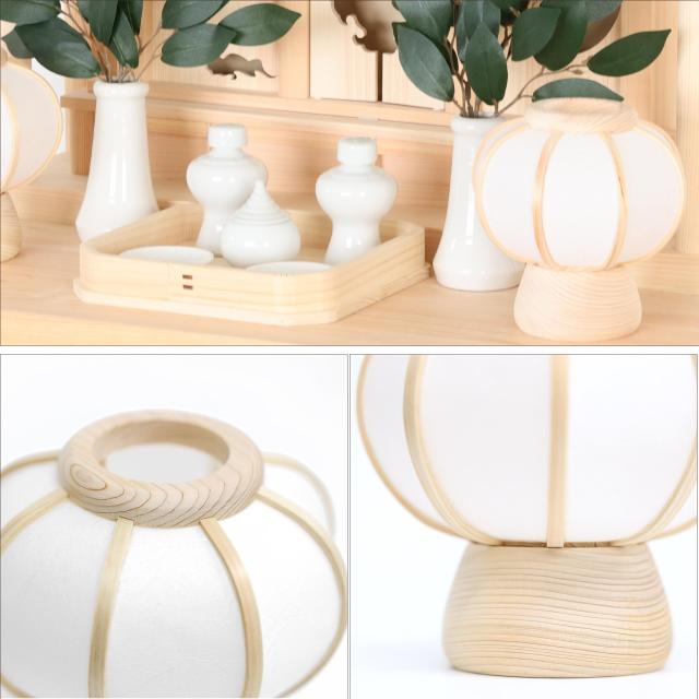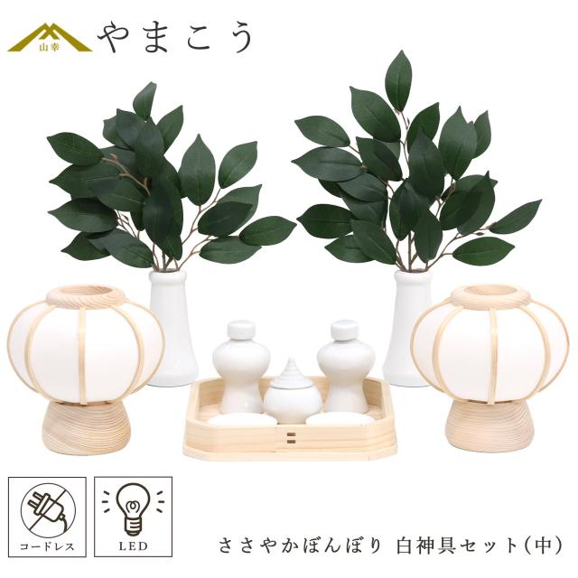 こちらの商品は、「ささやかぼんぼり」2本一対と白神具セット(中サイズ)を合わせたセット販売となります。