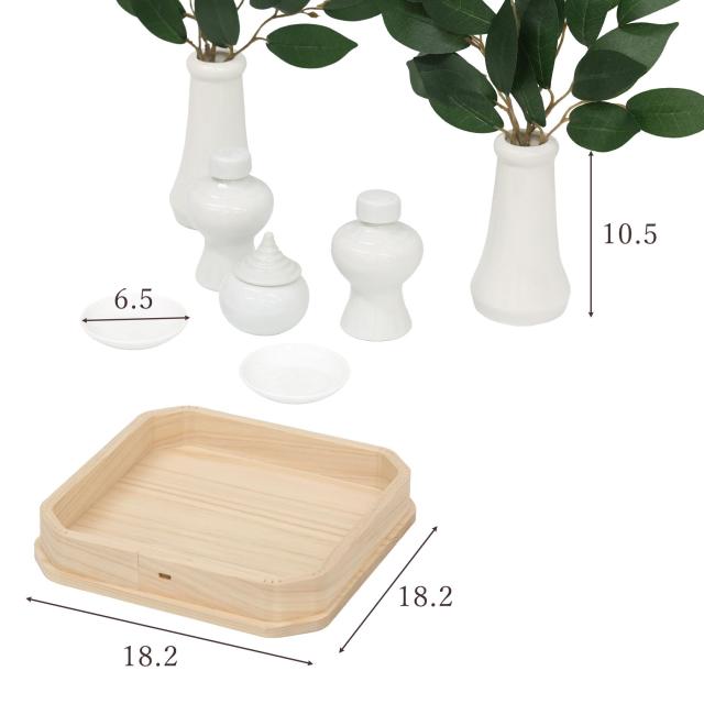 神具陶器は、伝統を守る基本の一式。桧の折敷(おりしき)に乗せ、丁寧にお供えを。