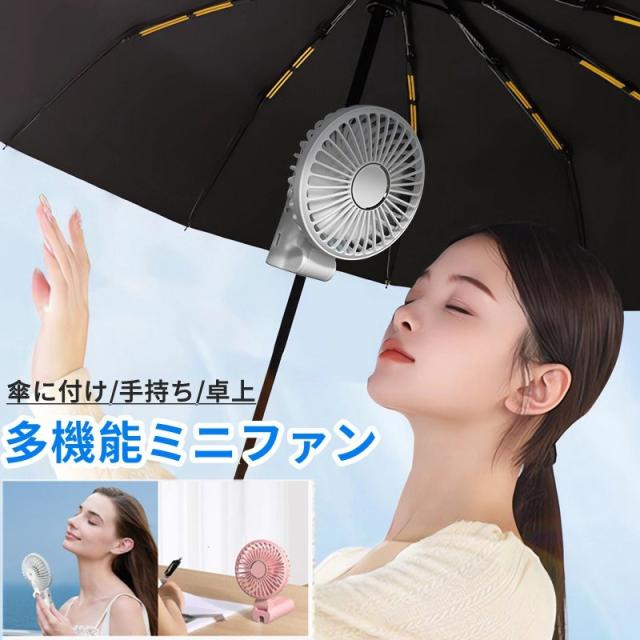 手持ち扇風機 ファン 傘につけられる ハンズフリー USB 充電式 扇風機 卓上 コンパクト ハンディファン