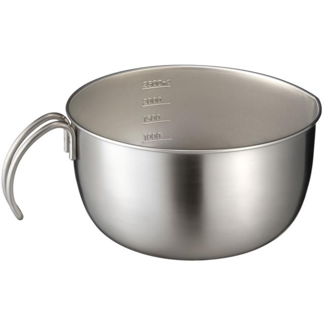 清潔でさびにくい18-8ステンレス製。底面積があり安定感がある形状です。計量に便利な目盛り付き。