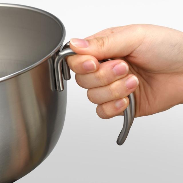 持ちやすさ、注ぎやすさ、ボウルの固定に配慮した設計です。