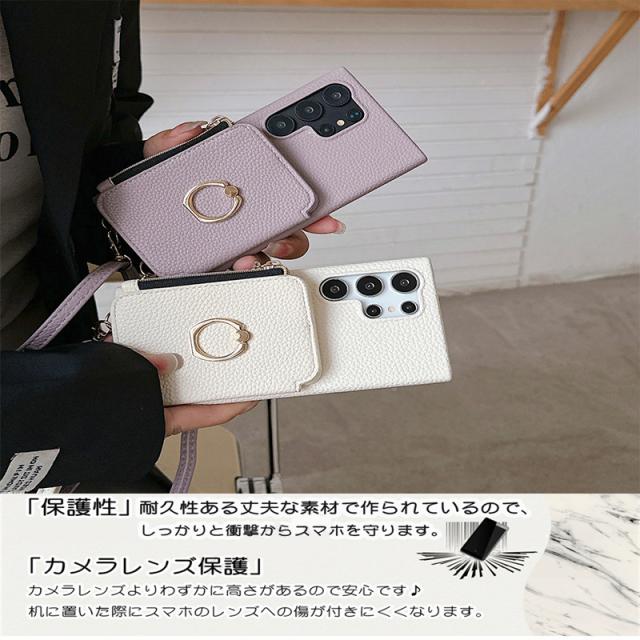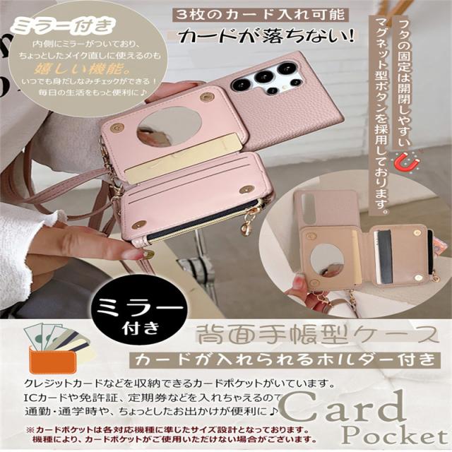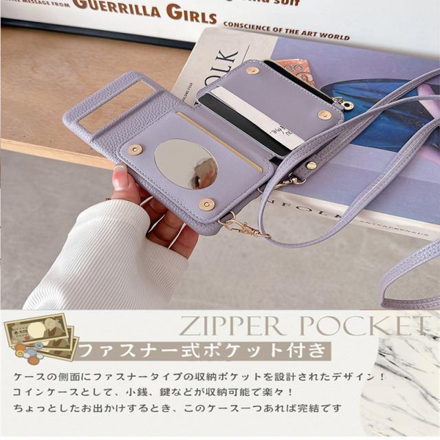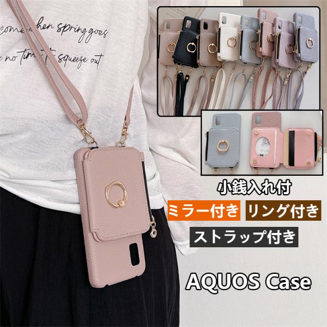 AQUOS wish4 SH-52E ケース 肩掛け ショルダー タイプ ファスナー 付き AQUOS sense10 R9 SH-51E sense8 アクオス センス9 携帯ケース かわいい AQUOS wish3 R8 Pro sense7 sense6 センス 6S 8 7Plus カバー 背面手帳型ケース リング付き ミラー付き 小銭入れ付き
