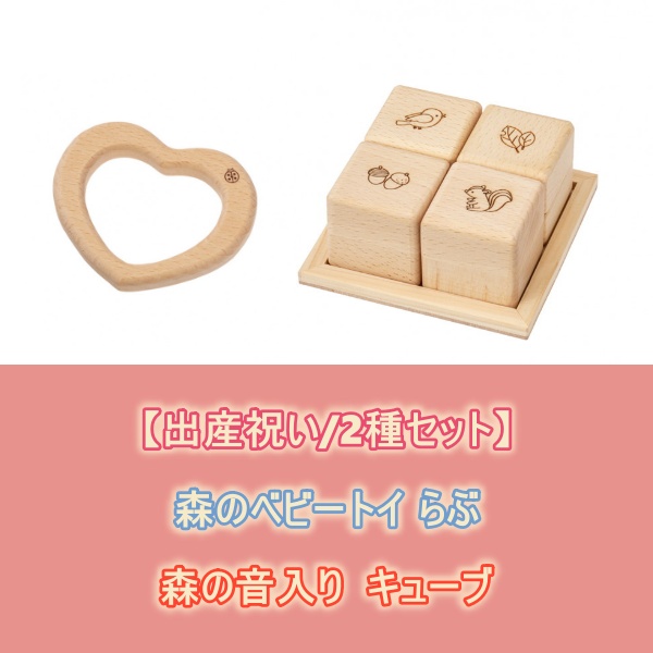 【送料無料】 【出産祝い/2種セット】木のおもちゃ MOCCO 森のベビートイ らぶ BA-34 + 森の音入りキューブ BA-50 日本製 対象年齢6ヶ月から
