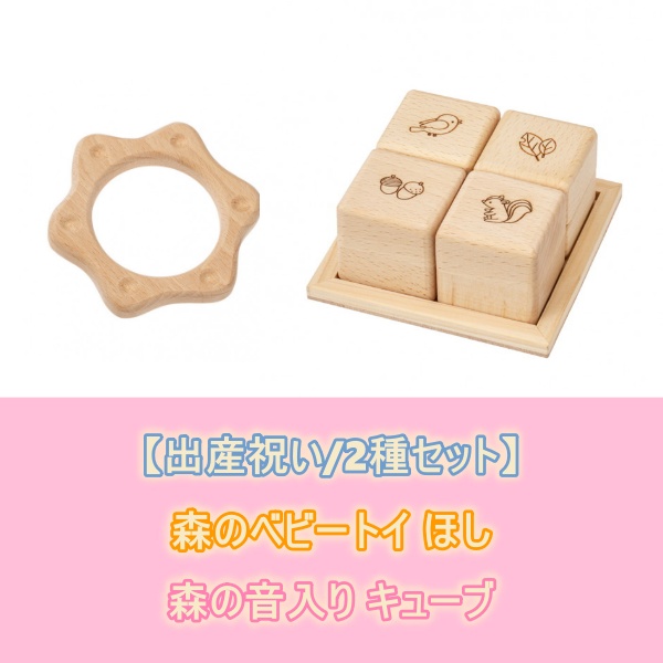 【送料無料】 【出産祝い/2種セット】木のおもちゃ MOCCO 森のベビートイ ほし BA-35 + 森の音入りキューブ BA-50 日本製 対象年齢6ヶ月から