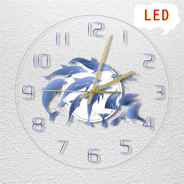 壁掛け時計 掛け時計 イルカ 光る LED オシャレ 北欧 静音 連続秒針 デジタル 軽量 12インチ かわいい リビング壁飾り 新築祝い 引越祝い ギフト