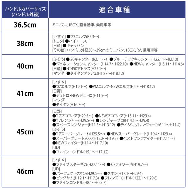 | [いすゞ]●'23エルフ(R5.3月〜) [トヨタ]●ハイエース [日産]●キャラバン [その他]●ハンドル外径38〜39cmのミニバン、1BOX、RV、乗用車等 | |