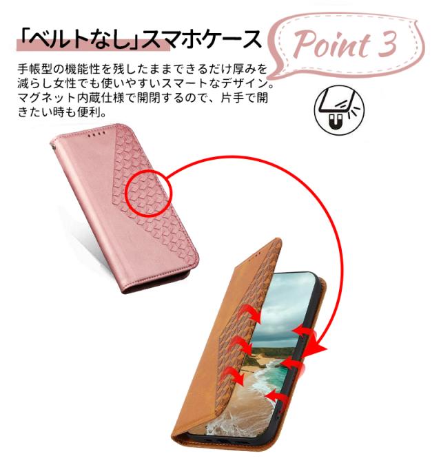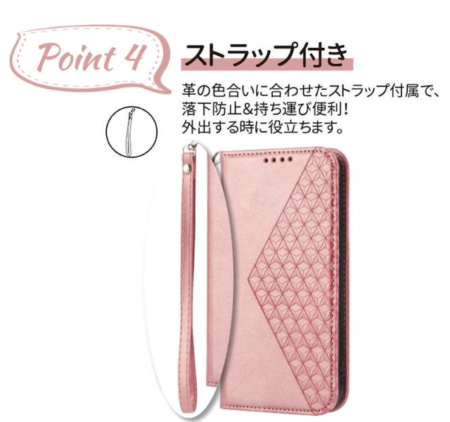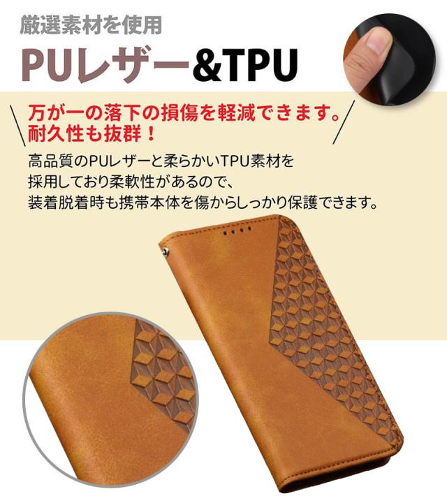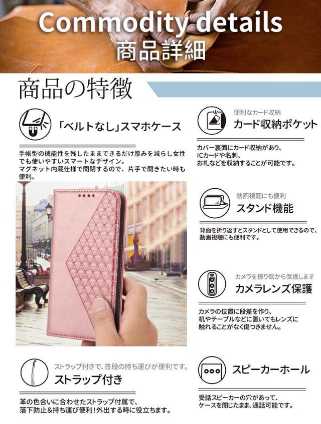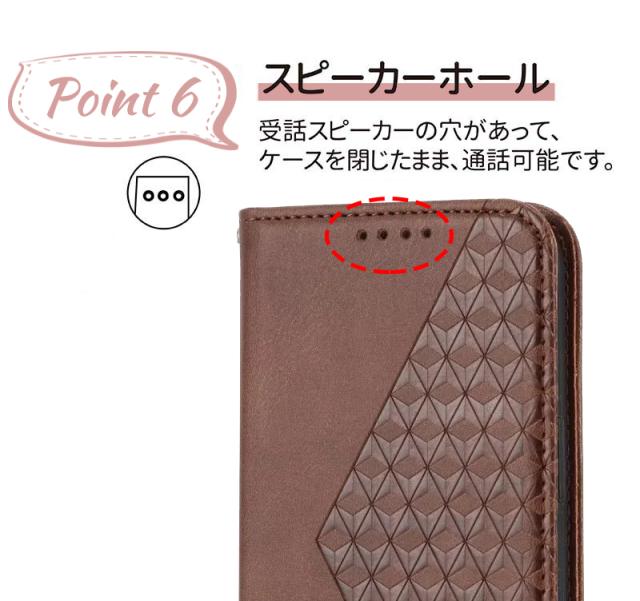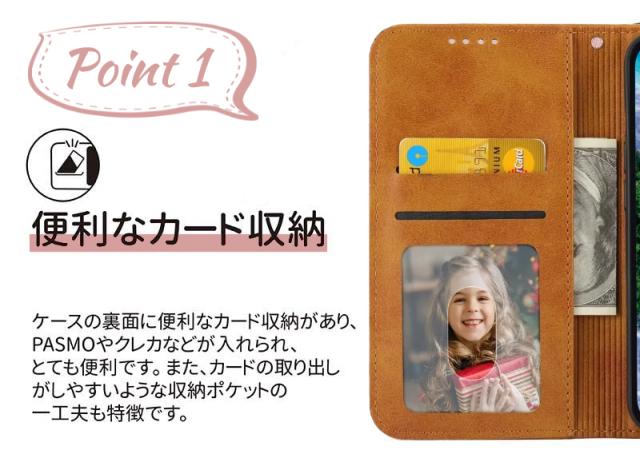 | 【高級のある手帳型ケース】 高級感のある手触りがいいPUレザーを全面に使用した、落ち着いた色合いの上品な雰囲気の手帳型ケースです。 【カードポケット付き】 カードやSUICAなどをまとめて収納できます。 【マグネット付き】 マグネットタイプを採用しているため、カバーの開け閉めも簡単です。 【スタンド機能付き】 ケースを横置きにするとスタンド機能になり、動画鑑賞や読書も楽しめます。 【カメラレンズ保護】 カメラより高めのデザインにすることで、カメラを擦り傷から保護します。 【本体同色のストラップ付き】 ケースの色合いに合わせたストラップ付属で、落下防止&荷物を減らせます。 |