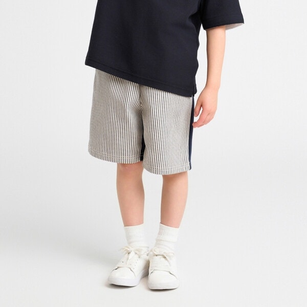 コムサイズム(COMME CA ISM)/ストレッチデニム/ヒッコリー×裏毛 ドッキングハーフパンツ