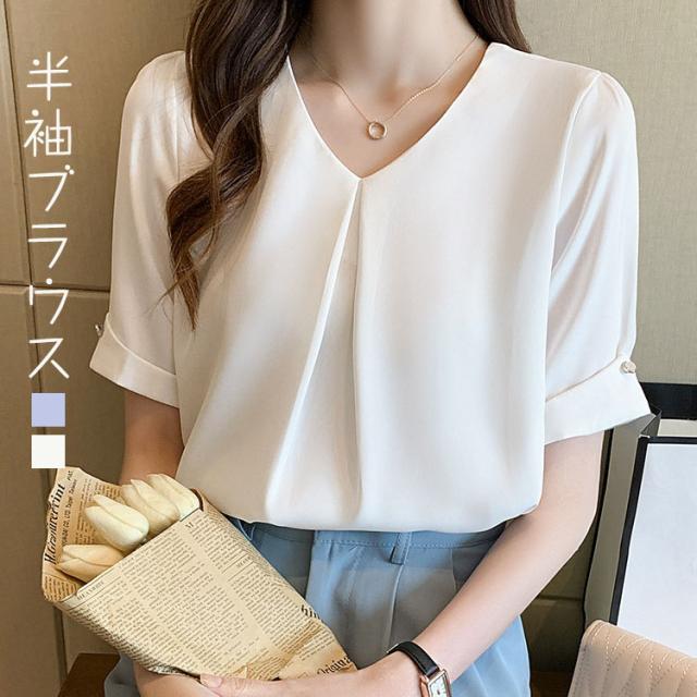 レディース ブラウス 半袖 トップス 上品 レース襟 無地 白い ブラック ホワイト シャツ きれいめ おしゃれ 可愛い 女の子 通勤 撮影 レディースファション 二次会 S M L 20代 30代