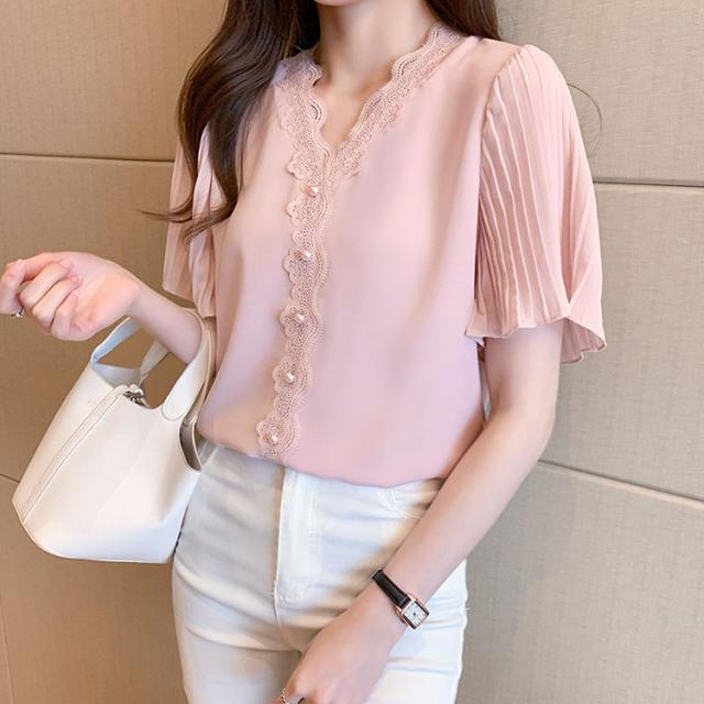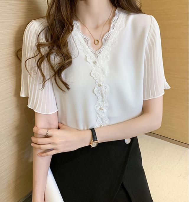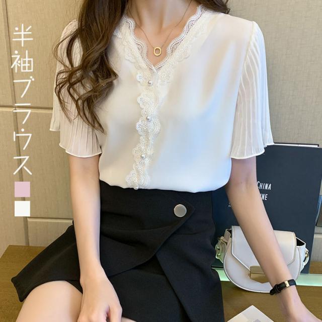 レディース ブラウス 半袖 トップス 上品 レース襟 無地 白い ブラック ホワイト シャツ きれいめ おしゃれ 可愛い 女の子 通勤 撮影 レディースファション 二次会 S M L 20代 30代