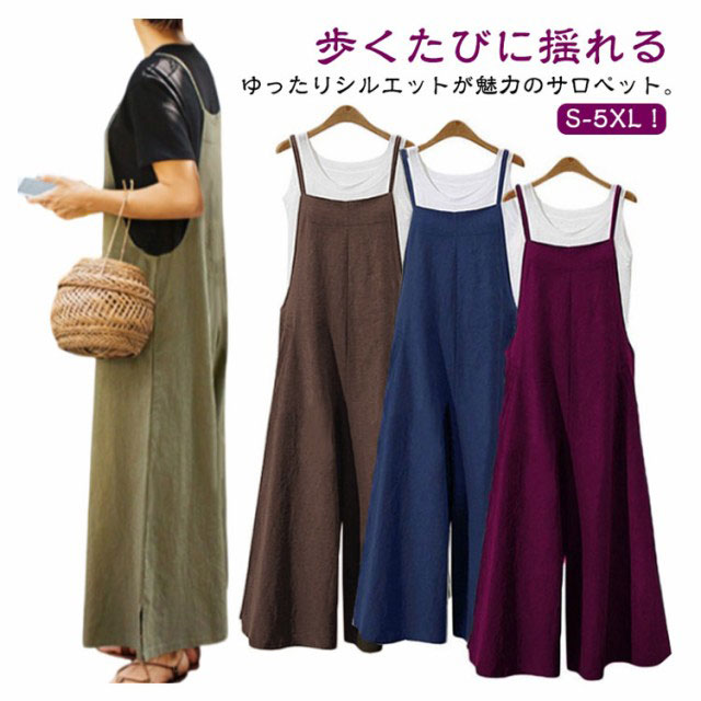 サロペット レディース オールインワン オーバーオール キャミサロペット ワイドパンツ ゆるサロペット サロペットパンツ ロング丈