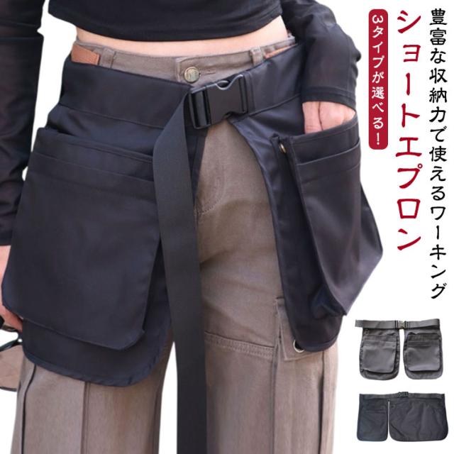 スタイリストエプロン 無地 カフェエプロン ショート丈 キッチン ガーデニング DIY キャンプ アウトドア ユニフォーム ウエスト調整 着脱簡単 誕生日 プレゼント ギフト