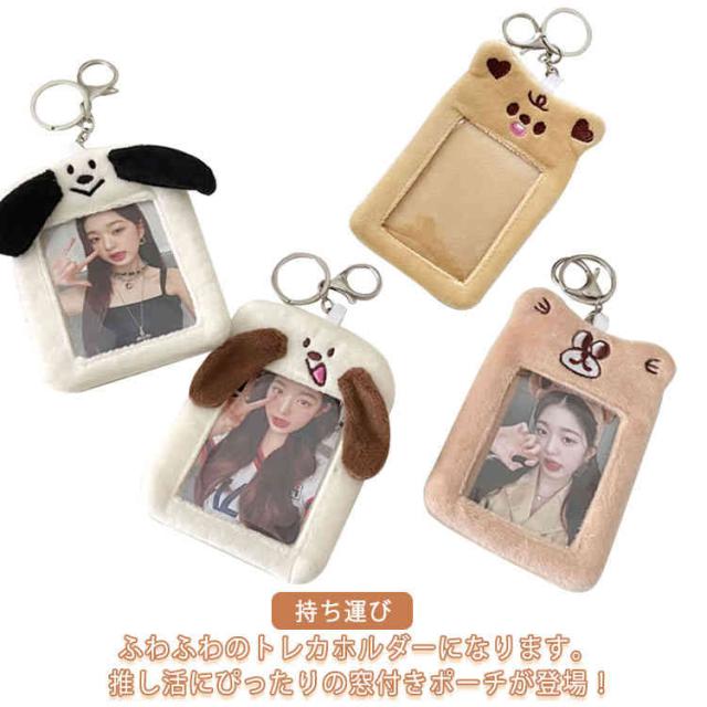 トレカホルダー 韓国 もこもこ 推し活 パスケース オタ活グッズ トレカケース キーホルダー 可愛い カードケース かわいい くま うさぎ ふわふわ 透明 トレカ収納