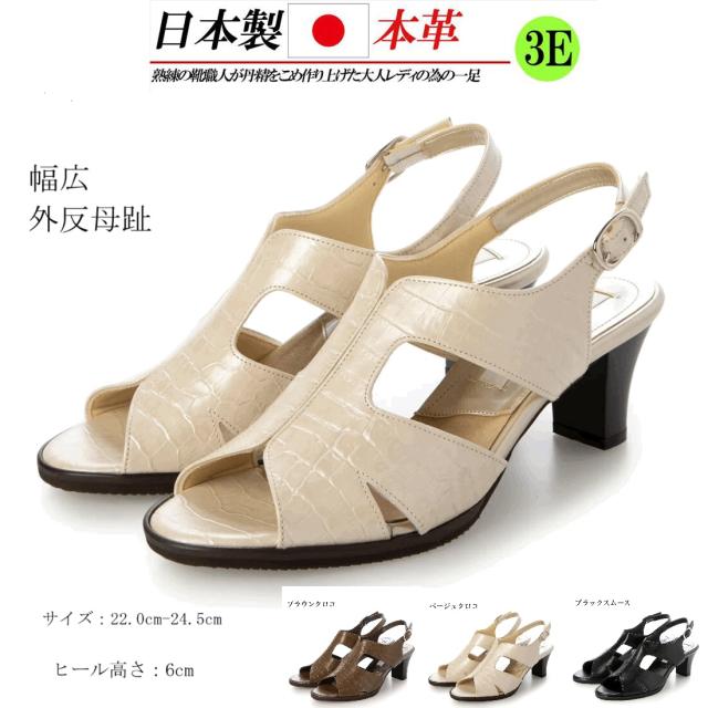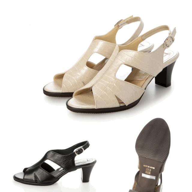 日本製 本革 サンダル 型押しレザーサンダル エレガンス コンフォートサンダル ストラップ付サンダル 上品 おしゃれ カジュアルサンダル 幅広 3e 外反母趾 ヒール6cm