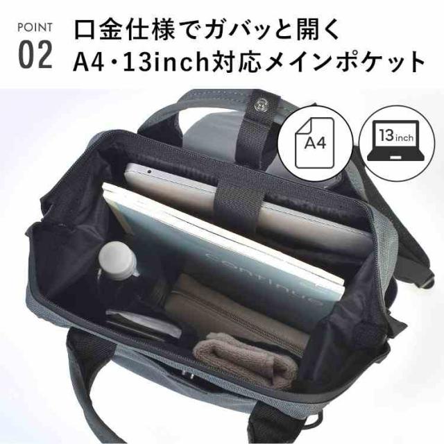 アネロ 口金 リュック anello レディース メンズ 防水 撥水 14L 小さめ A4 大容量 軽量 軽い 通勤 通学 ポケット 多い パソコン PC 13インチ キャリーオン 背面ポケット 背面ファスナー 旅行 リュックサック ビジネスバッグ おしゃれ 黒 ブラック ネイビー ベージュ グレー
