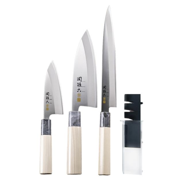 貝印 包丁セット 関孫六 和包丁3本+研ぎ器セット | KAI 日本製 和包丁 片刃 魚をさばく 三枚おろし 魚 捌く 出刃包丁 刺身 釣り 錆びにくい