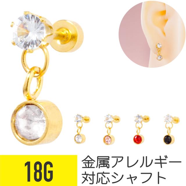 ラウンド ジュエル チャーム ストレートバーベル 18G サージカルステンレス ジルコニア ゴールド ヘリックス 軟骨ピアス ボディピアス cz
