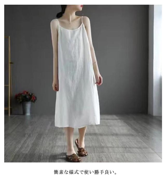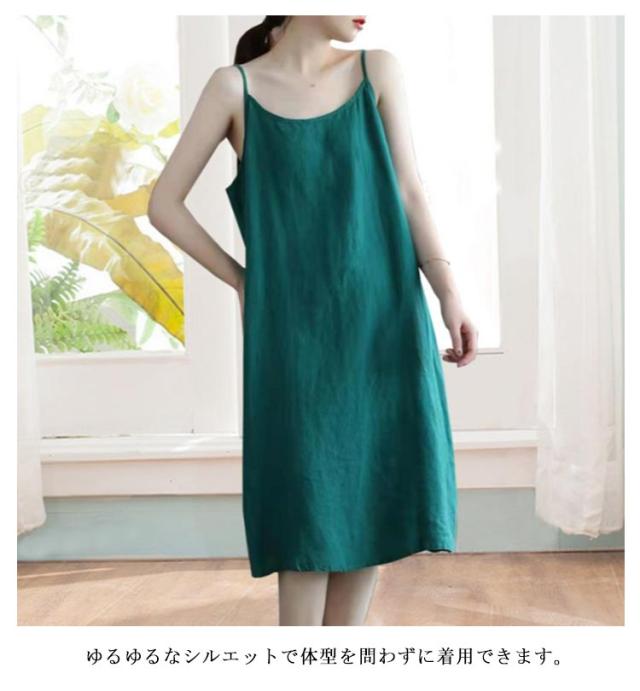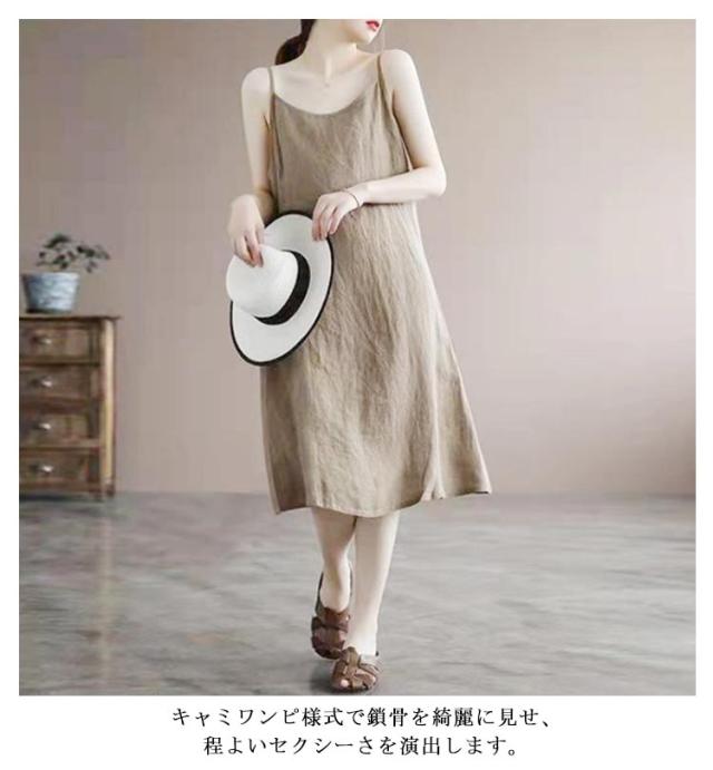 キャミソールワンピース 膝下丈 綿麻ワンピース リネン ワンピース 夏ワンピース レディース ロング キャミソールワンピース キャミワンピ ノースリーブ 綿麻 お出かけ 袖なし ナチュラル リネンワンピース リネンワンピ 無地