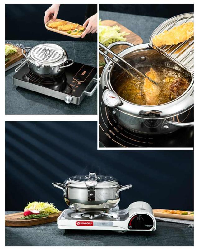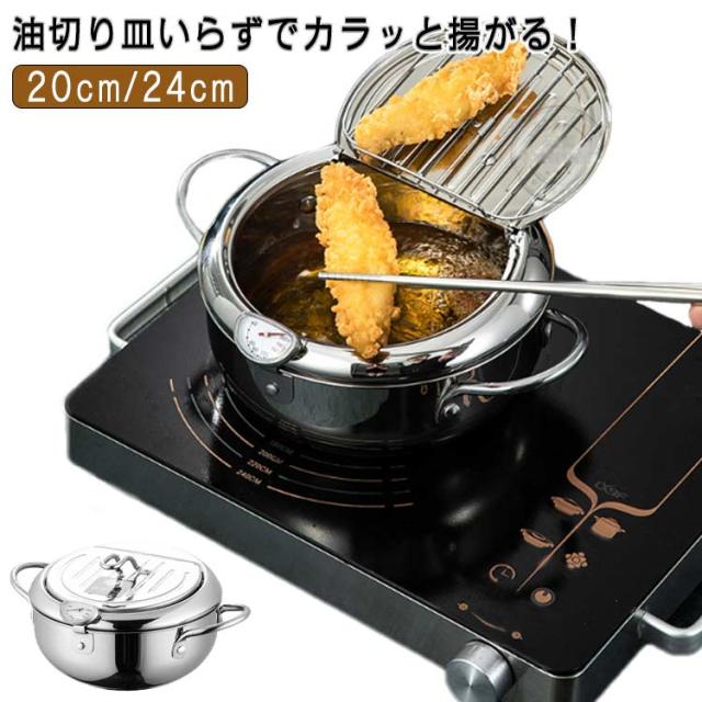天ぷら鍋 20cm IH対応 24cm 直火 ステンレス 温度計付 蓋付き フライヤー 揚げ鍋 鍋 天ぷら鍋 揚げ物 天ぷら 電磁調理器対応