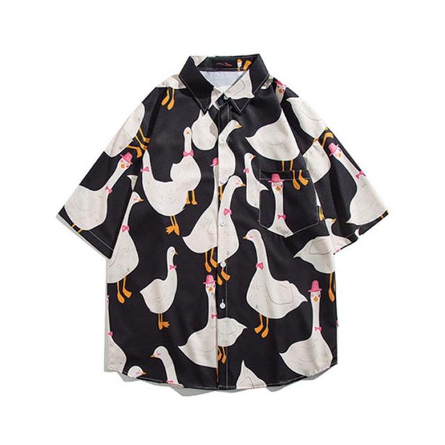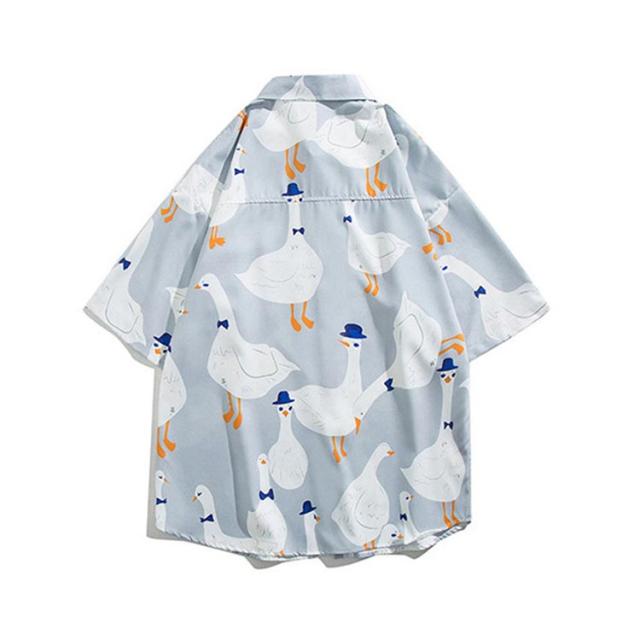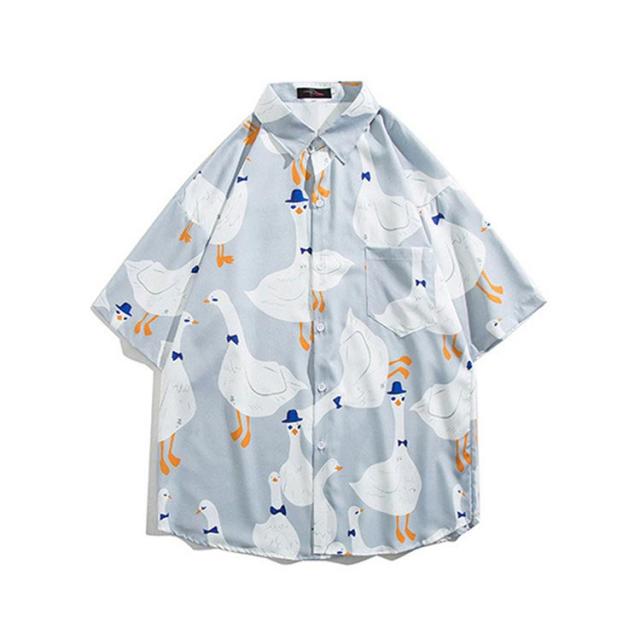 シャツ アヒル柄 半袖シャツ シャツ 夏服 メンズ かわいい カジュアルシャツ 襟付きシャツ シャツ 半袖 原宿系 開襟シャツ 柄シャツ ファッション リゾート 海