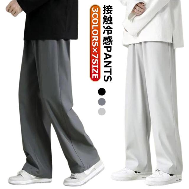 夏 ゴルフパンツ ウエストゴム 夏用 パンツ ストレートパンツ グレー 涼しい 黒 外出着 ストレッチ パンツ 大きいサイズ 涼しい 接触冷感 ひんやり パンツ スリム 部屋着 冷感 運動着 イージーパンツ 冷感パンツ メンズ アイスシルク ひんやり 涼しい ロングパンツ