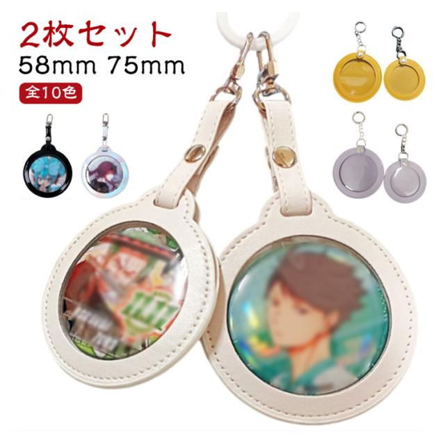 収納 75mm 58mm 【2枚セット】缶バッジカバー 透明 PUレザー キーホルダー 缶バッジ入り 缶バッジ ポーチ 傷防止 保護カバー 【2枚セット】缶バッジカバー 痛バッグ クリア おしゃれ かわいい 缶バッジ カバー プレゼント
