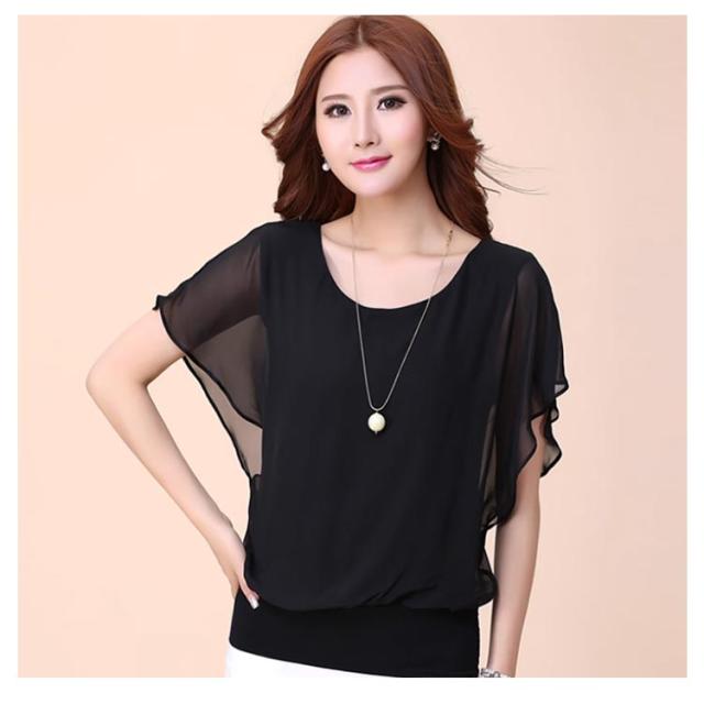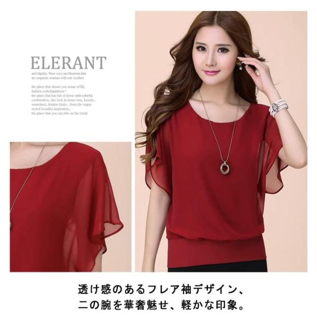 シフォン半袖ブラウス フリル フレア袖 トップス シフォンブラウス シフォン半袖ブラウス シアー ブラウス 夏 フリルスリーブ 体型カバー レディース 韓国ファッション ラウンドネック オフィスカジュアル キレイめ おしゃれ