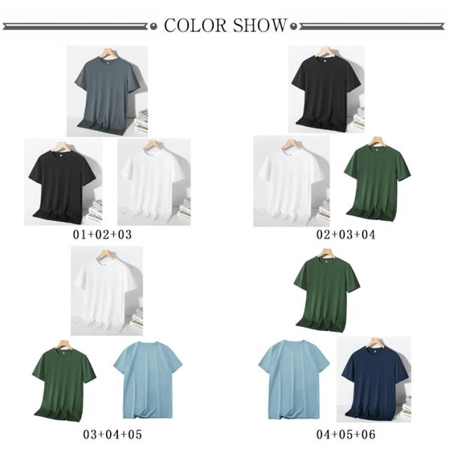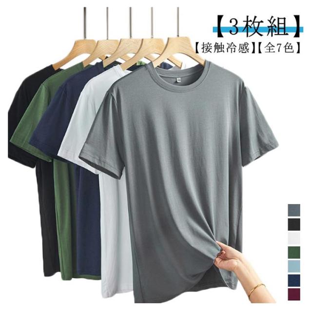 【3枚組】接触冷感 薄手 メンズファッション 【3枚組】接触冷感 夏 クール 涼しい tシャツ ティーシャツ トップス 半袖 吸汗速乾 無地 作業着 カットソー 夏服 クルーネック 全7色 アイスシルク 白 黒 ひんやり シンプル