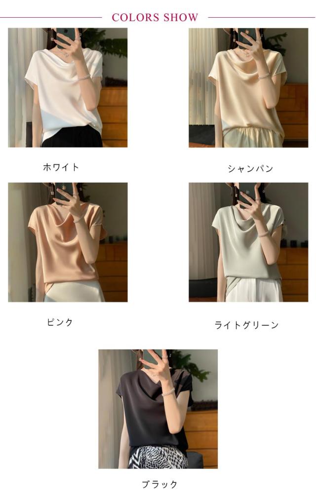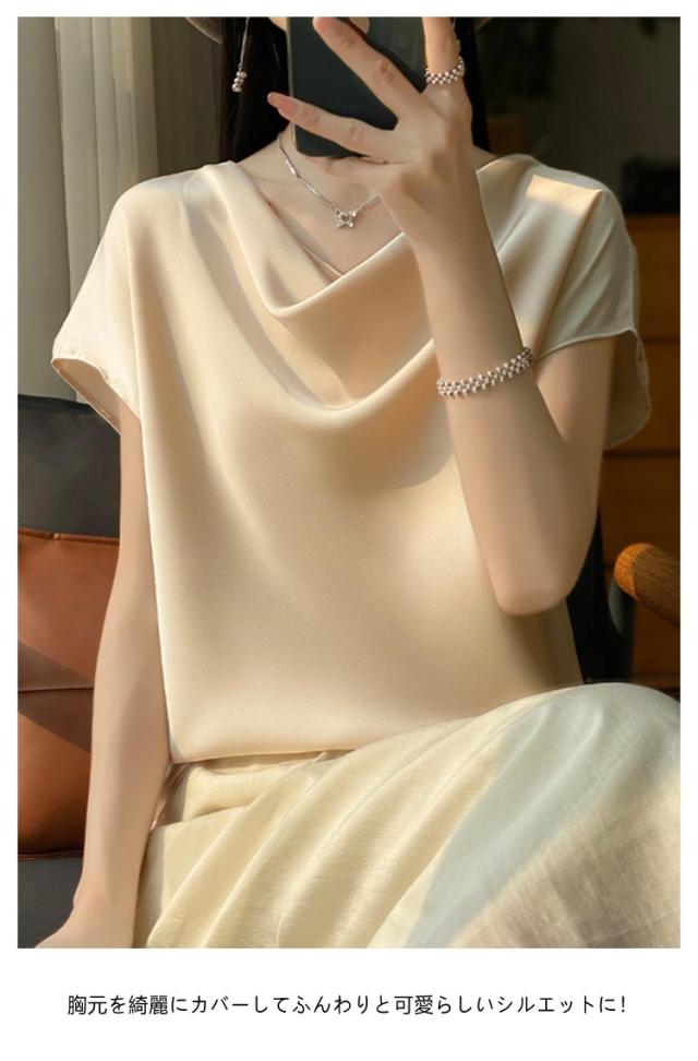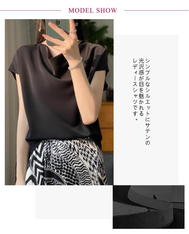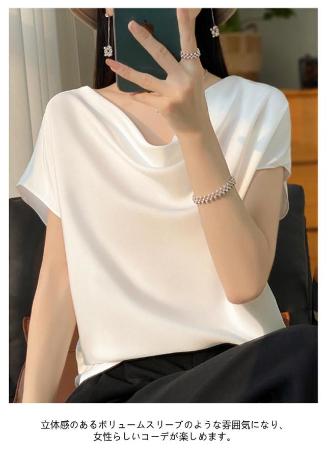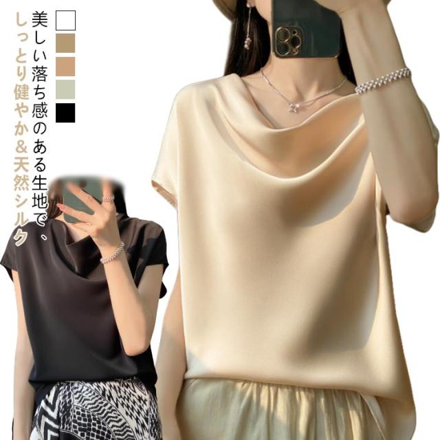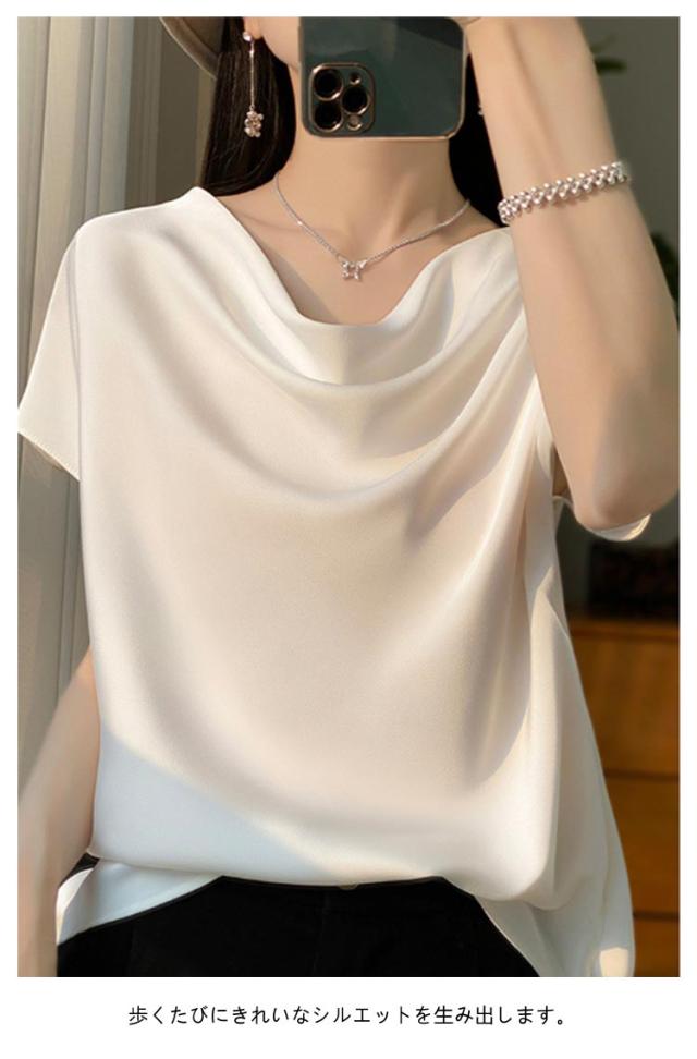 夏 Uネック サテン 半袖 レディース ブラウス tシャツ シルク プルオーバー 大きいサイズ 吸湿 フレンチスリーブ トップス 体型カバー インナー シャツブラウス 高品質 保温 シルク 肌に優しい 薄手 滑らか ひんやり 光沢感 透けない