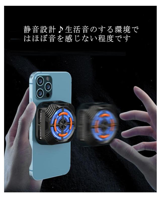 | スマホ冷却ファン マグネット式 急速冷却 強磁性は携帯電話の発熱部位にシームレスに吸着して、ケーブルの向きが自由に動かせ、縦持ちや横持ちに大丈夫です スマホの熱暴走対策ができます。視聴やゲームなどを長時間していると、スマホ本体が熱くなります 静音設計♪生活音のする環境ではほぼ音を感じない程度です | |