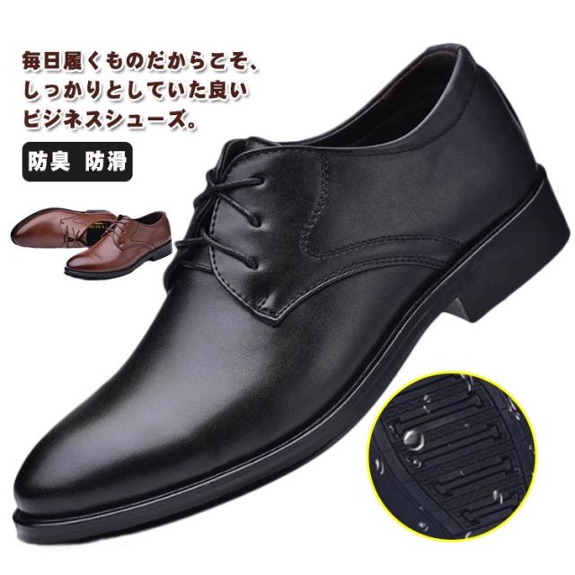 ビジネスシューズ 革靴 メンズ 幅広 ビジネスシューズ 冠婚葬祭 防臭 疲れない 防滑 合成皮革 ゴム底 紐プレーントゥ ビジネス 仕事 通勤 就活 撥水 靴 紳士靴 おしゃれ フォーマル