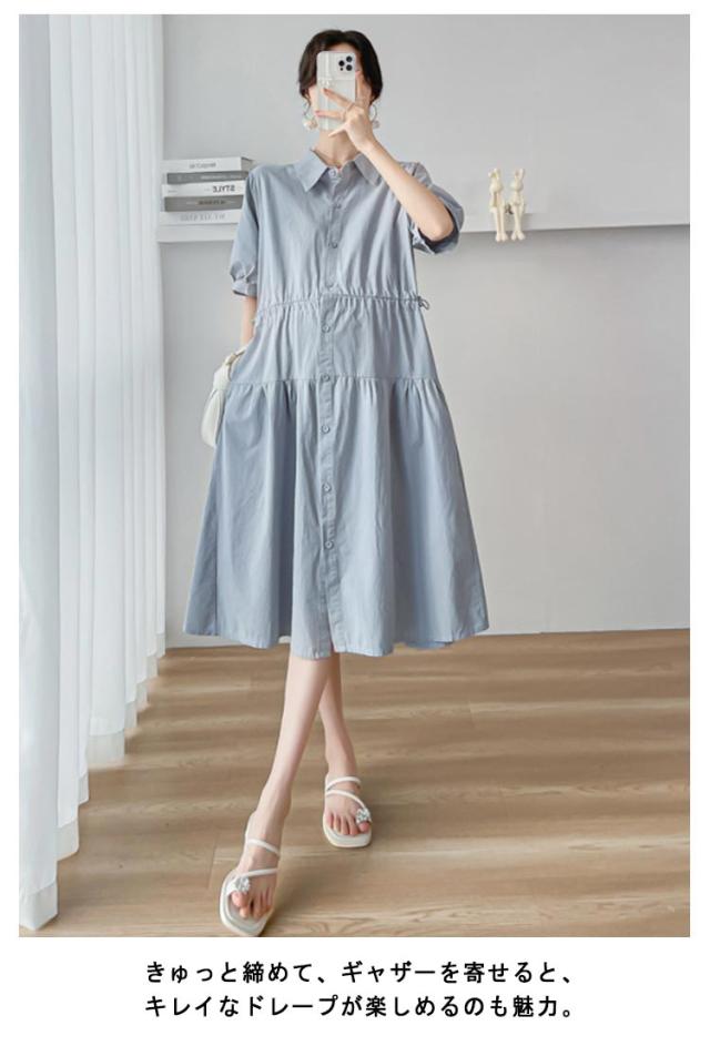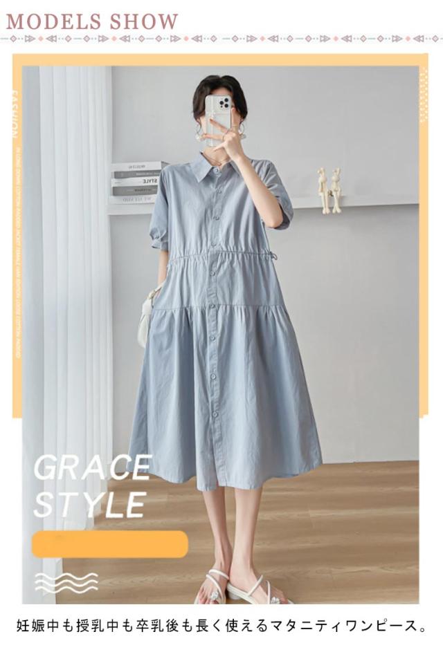 ワンピース 授乳服 夏服 マタニティワンピース ミモレ丈 マタニティウェア マタニティ シャツワンピース ひざ下 妊娠服 授乳 夏ワンピース フレアワンピース 30代 40代 ロングワンピース 半袖 産前産後OK 春 夏服 マタニティワンピース 前開き