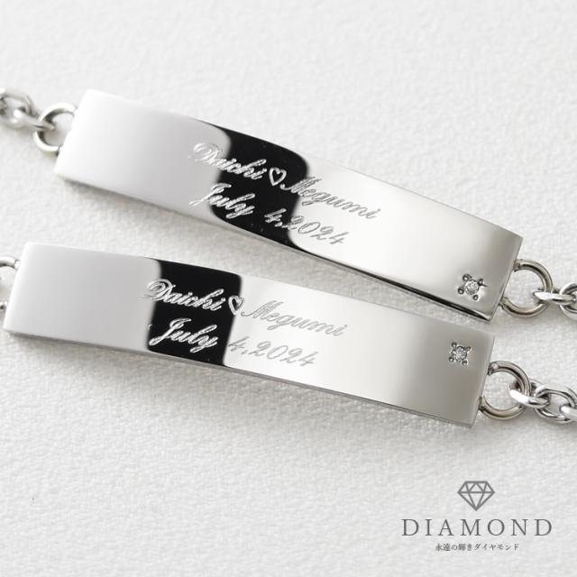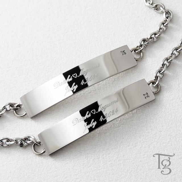 ペアブレスレット 2本セット 刻印 ステンレス つけっぱなし 金属アレルギー対応 大人 シンプル ダイヤモンド プレート ブレスレット カップル テラグラティア Terra-gratia PairBracelet オモテ面刻印 lstb002f_pair