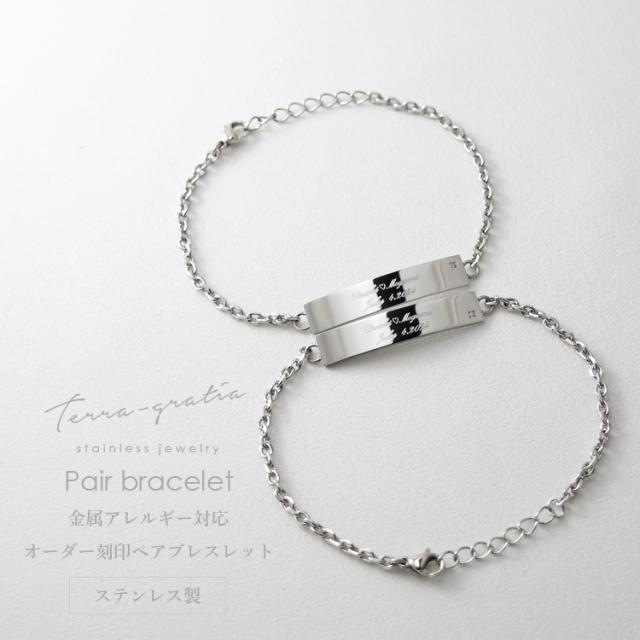 ペアブレスレット つけっぱなし 刻印 ステンレス 金属アレルギー対応 大人 シンプル ダイヤモンド プレート ブレスレット ペアセット価格 テラグラティア Terra-gratia PairBracelet【オモテ面刻印】オリジナルオーダー 表面刻印 サージカルステンレス カップル ランキング ギフト プレゼント 誕生日 記念日 ホワイトデー クリスマス(lstb002f_pair)