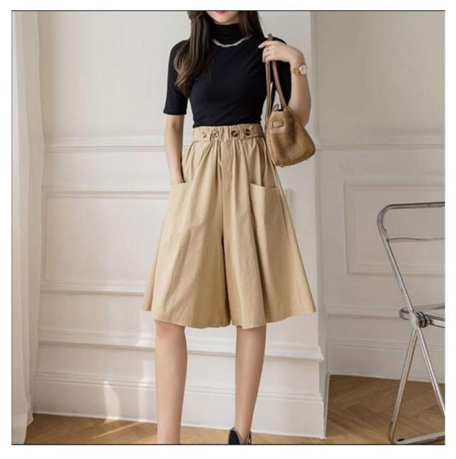 | 全4色!大人の女性が履け、キレイめカジュアルショートパンツ! 膝丈のゆったりAラインシルエットで、脚が細く見える。 ハイウエストでスタイルアップ効果も。 ハリがあり、サラッとした伸縮性のある素材が涼し気。 サイドにポケット付きで、使いやすい。 ナチュラルな合わせやすい、4カラー展開に。 | |