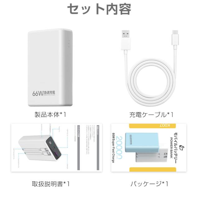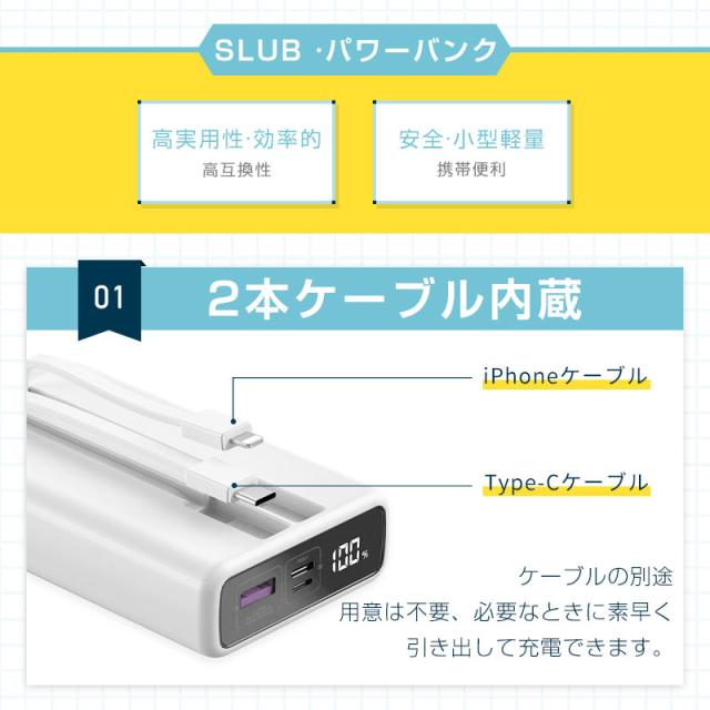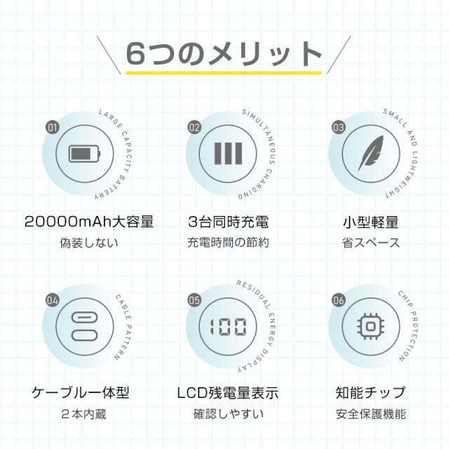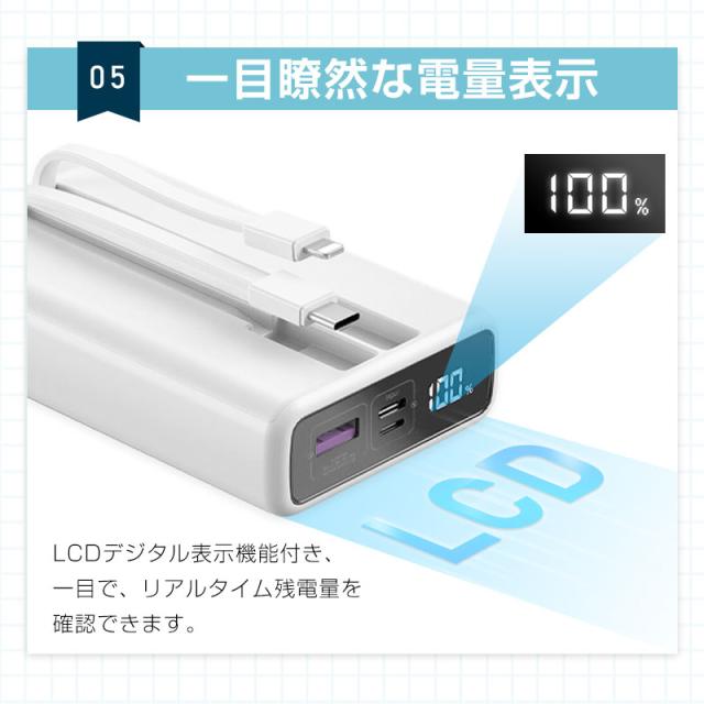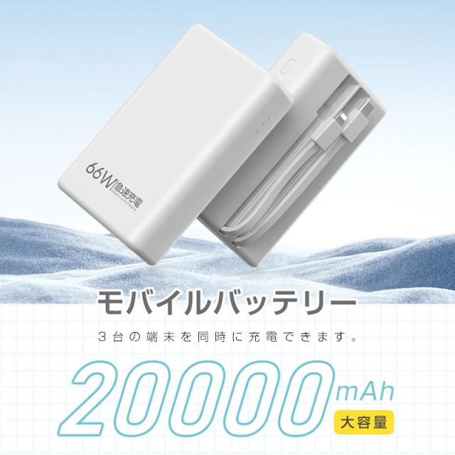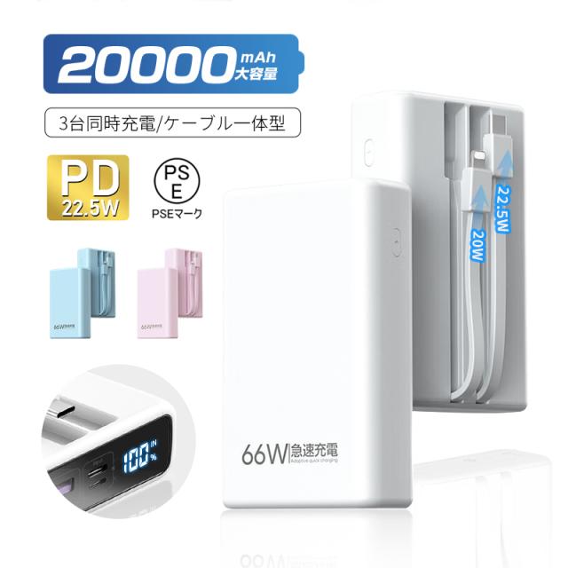 モバイルバッテリー 20000mAh 多機種対応 LCD 軽量 持ち運び便利 5A 急速充電 パワーバンク 大容量 互換性抜群 22.5W QC 3.0 防災電源 小型 2本ケーブル内蔵 3台同時充電 PSE認証済み iPhone17/iPhoneAir対応 【PL保険加入済み製品・安心】