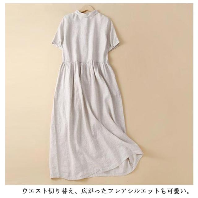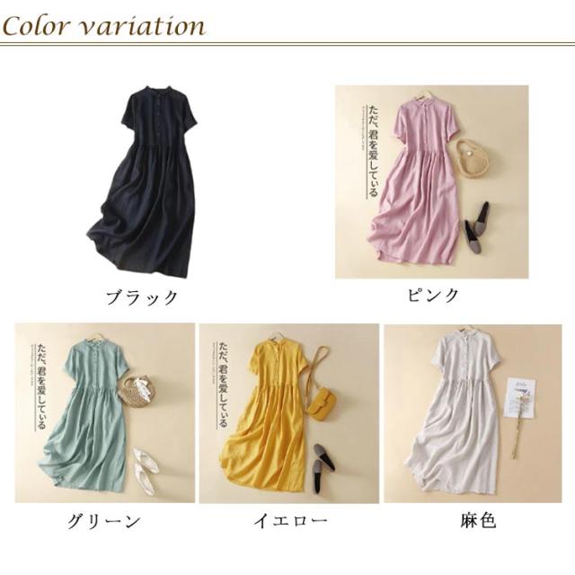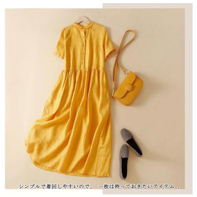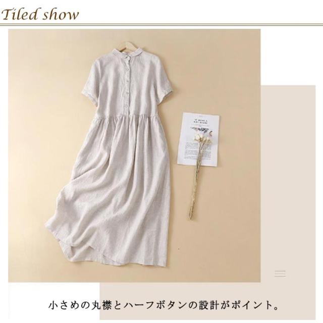 綿麻 綿 ワンピース ミモレ きれいめ コットン 半袖ワンピース シンプル 丸襟 ロング 30代 リネン 半袖 麻 大きいサイズ ゆったり 大人 ナチュラル ワンピース 50代 春 夏 40代 カジュアル 無地