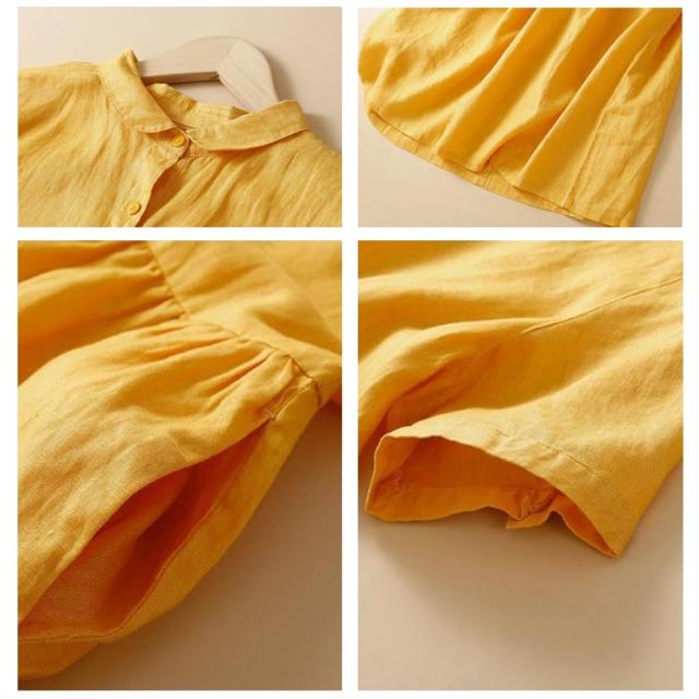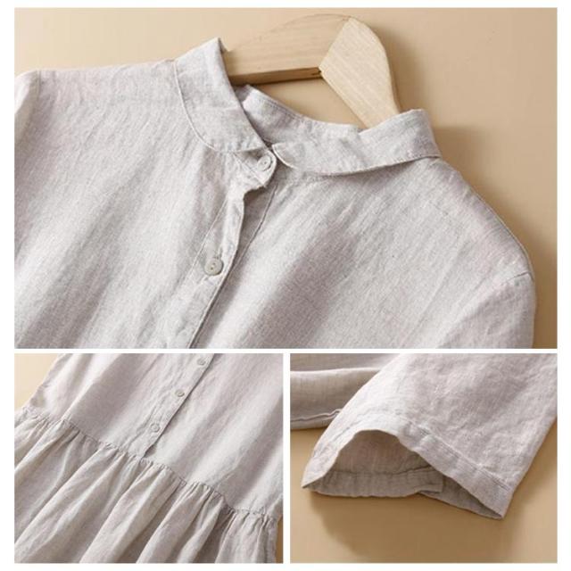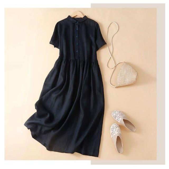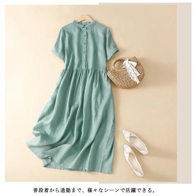 | 全5色!着やすて清涼感ある半袖ワンピース。 小さめの丸襟とハーフボタンの設計がポイント。 ウエスト切り替え、広がったフレアシルエットも可愛い。 ナチュラルな綿麻素材は、さらりとした着心地で見た目も涼やか、暑い日にも着心地良い。 普段着から通勤まで、様々なシーンで活躍できる。 シンプルで着回しやすいので、 一枚は持っておきたいアイテム 。 | |