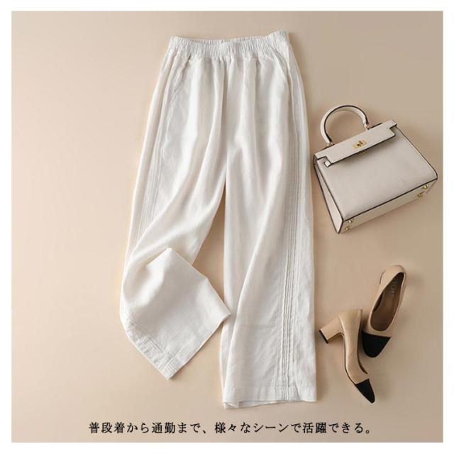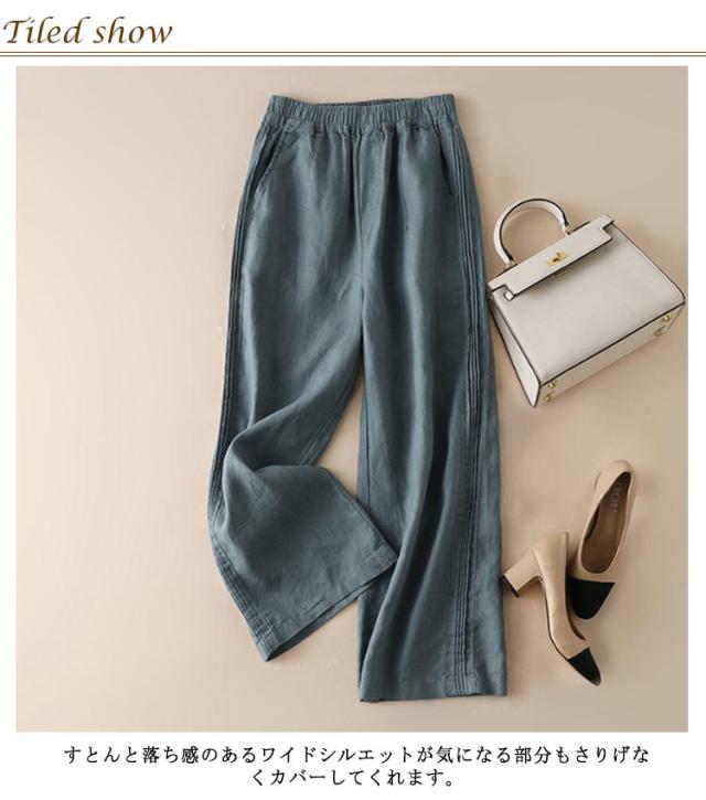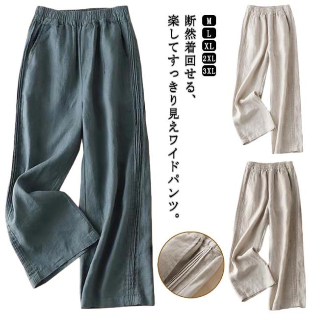 ハイウエスト ロング パンツ ワイドパンツ ワイド ワイドパンツ 夏 ゆったり きれいめ ウエストゴム 綿 柔らか おしゃれ ロングパンツ コットン 可愛い 着痩せ 薄手 春 ゆるパンツ 秋 30代 40代 50代