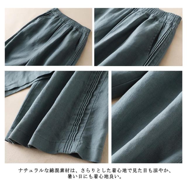 | 断然着回せる、楽してすっきり見えワイドパンツ。 すとんと落ち感のあるワイドシルエットが気になる部分もさりげなくカバーしてくれます。 ナチュラルな綿混素材は、さらりとした着心地で見た目も涼やか、暑い日にも着心地良い。 普段着から通勤まで、様々なシーンで活躍できる。 シンプルで着回しやすいので、 一本は持っておきたいアイテム 。 | |
