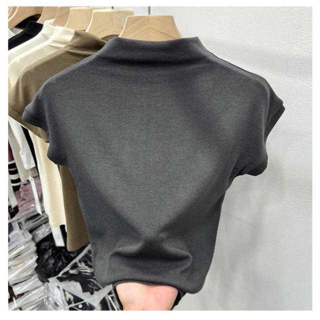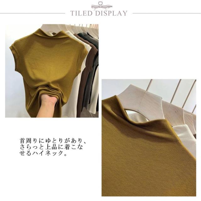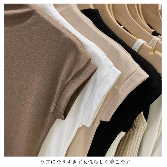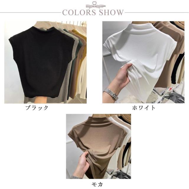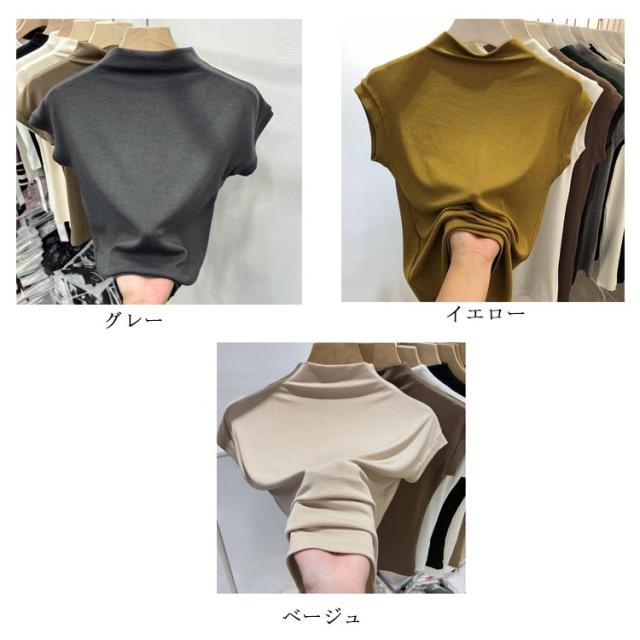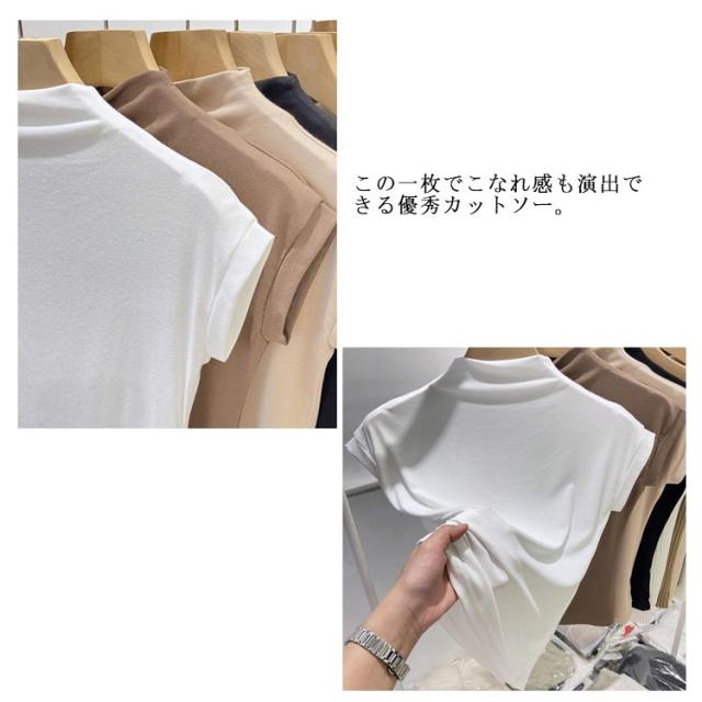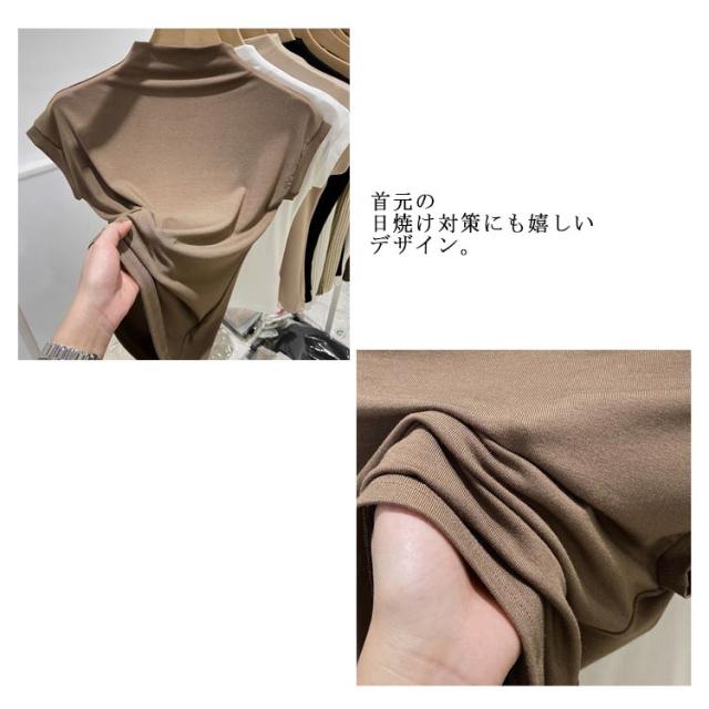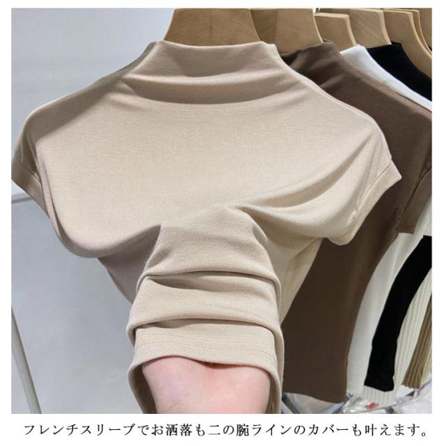 半袖Tシャツ カットソー 伸縮性 ハイネック レディース プチハイネック 薄手 半袖 ストレッチ トップス 無地 ハイネックTシャツ レディース プルオーバー お洒落 カジュアル 大人 こなれ感 フレンチスリーブ 送料無料