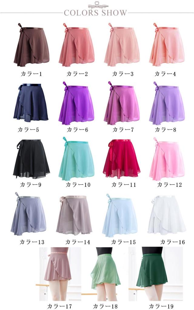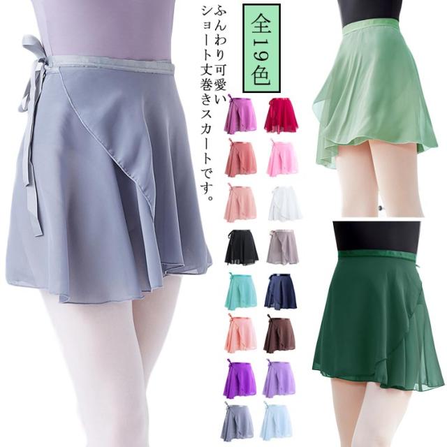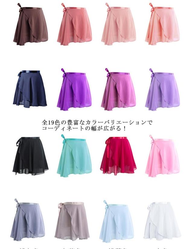 シフォン 大人用 バレエ スカート ショート丈 ラップスカート ダンス衣装 ダンス リボン結び 練習着 レッスン着 子供用 スカート 可愛い 全19色 巻きスカート
