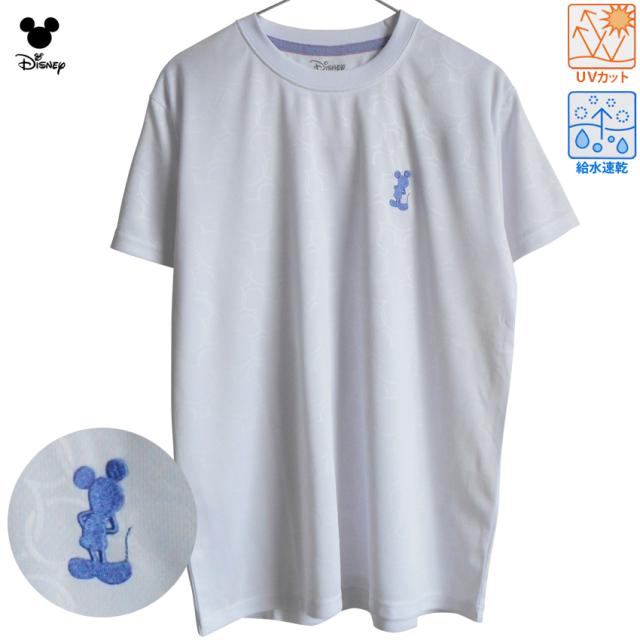 送料無料 Tシャツ ホワイト 白 ミッキー ミッキーマウス ディズニー レディース UV対策 吸水 速乾 cool ドライウェア スポーツ ジョギング ヨガ ピラティス フィットネス ジム ドライメッシュ 刺繍 ワンポイント 派手 透かし 模様 総柄 モノグラム チェーン柄 バスケ