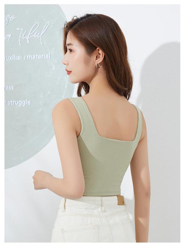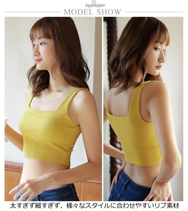 綿混 リブ レディース ショート丈 カップ付きタンクトップ ノンワイヤー ブラトップ スクエアネック ルームウェア ナイトブラ カップ付きインナー ブラキャミ 下厚パッド 寝間着 可愛い 下着 女性 おしゃれ カップ付きタンクトップ 春 夏