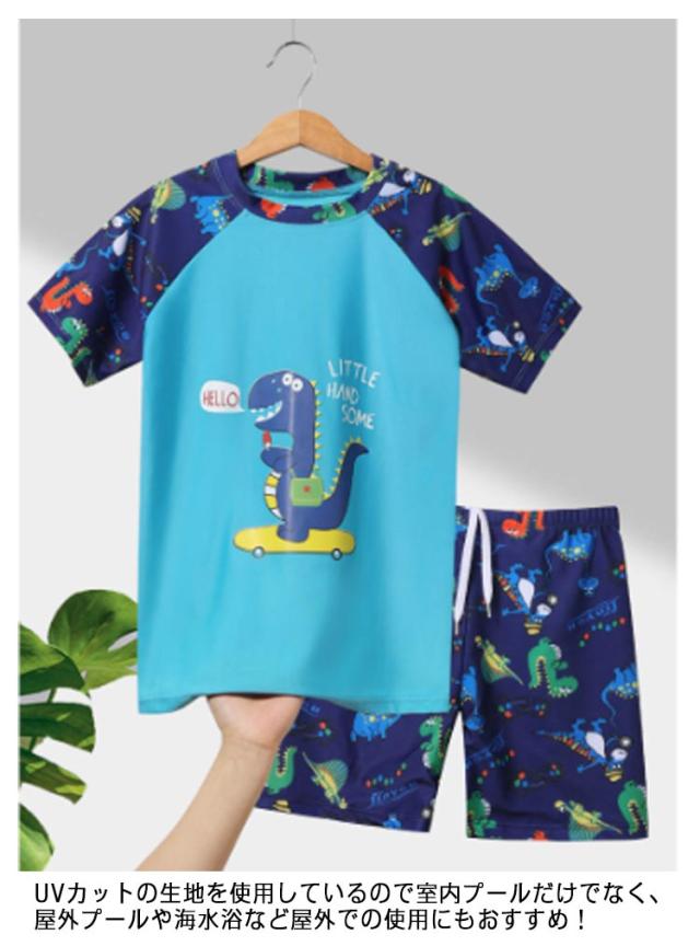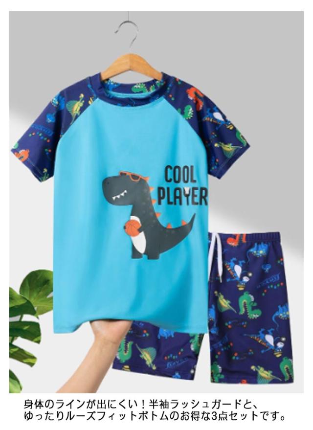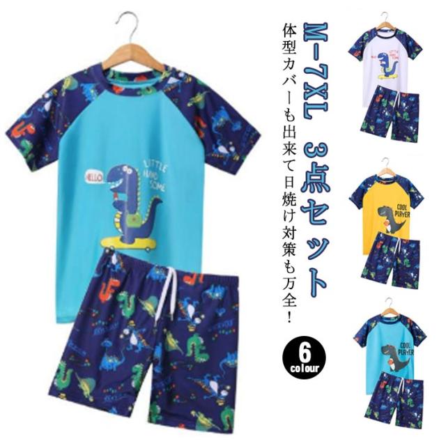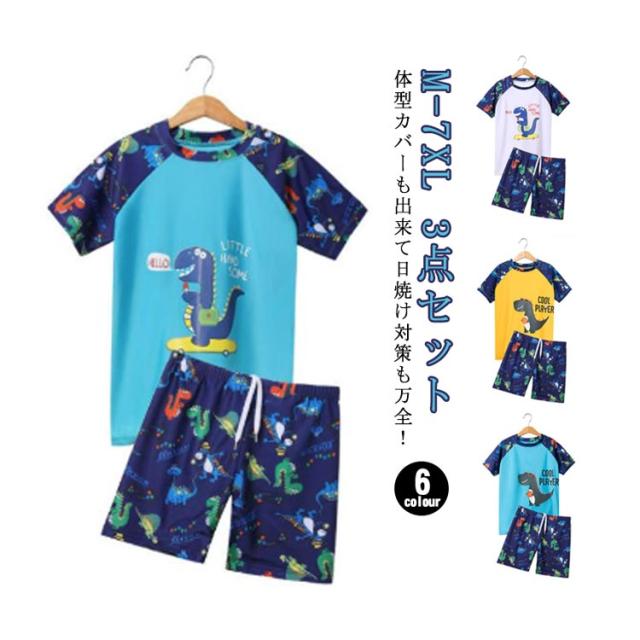 紫外線対策 無地 プール 男の子 半袖 夏 女の子 3点セット パンツ スクール水着 海 水着 キッズ 総柄 上下セットアップ UVカット UPF51+ セパレート ショートパンツ 海パン 水着 幼稚園 小学生 中学生 セットアップ ラッシュガード