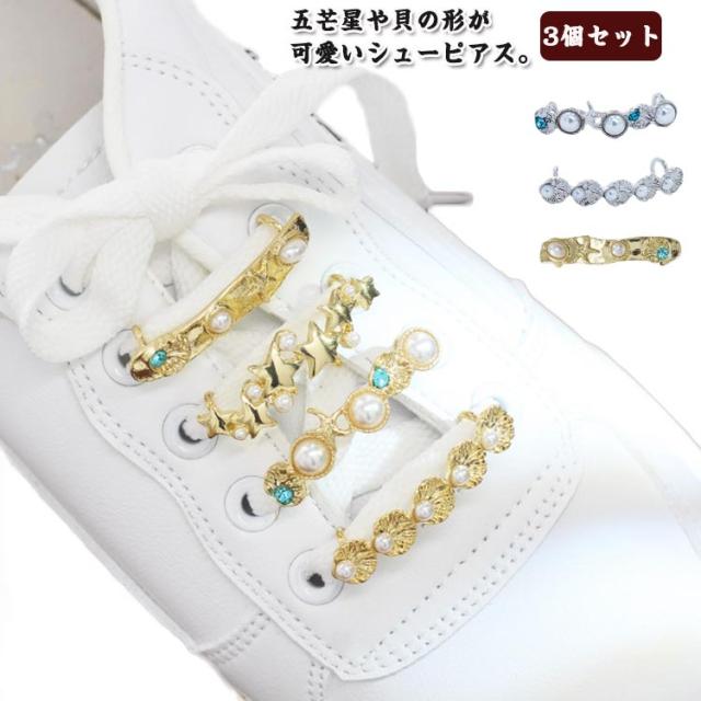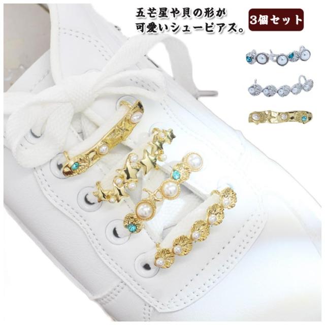 | 五芒星や貝の形が可愛いシューピアス。 3個セット 靴紐に付けるだけで簡単にアレンジ可能! シンプルなスニーカーを華やかに飾ることができます。 | |
