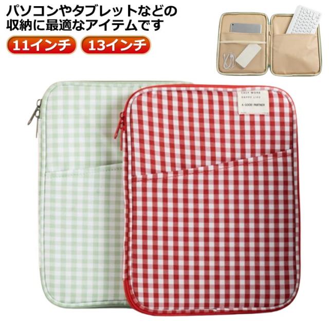 韓国 タブレットケース ケース 11インチ パソコンケース タブレット 10.1インチ オシャレ 13インチ チェック柄 インナー タブレットバッグ PCバッグ かわいい 11インチ 13インチ 通勤 パソコンポーチ 衝撃吸収 ipad MacBook 可愛い
